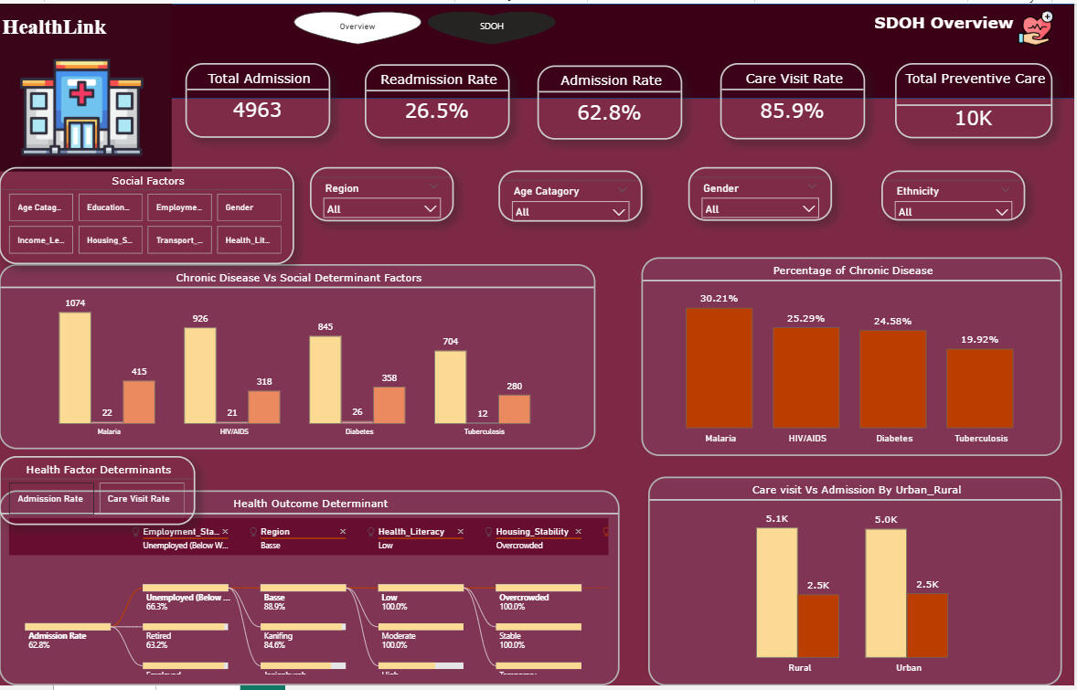 3. Built Power BI dashboards to visualise health equity metrics, risk areas, and geospatial distribution.